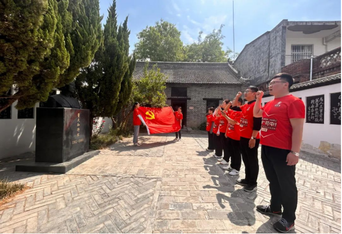 在董天知将军的雕像前,参加活动的党员整齐列队,怀着无比崇敬的心情,庄严地举起右手,重温入党誓词。“我志愿加入中国共产党……”铿锵有力的誓言响彻故居上空,久久回荡。这不仅是一次对革命先烈的庄严告慰,更是党员们对自己初心使命的再次坚定与强化。